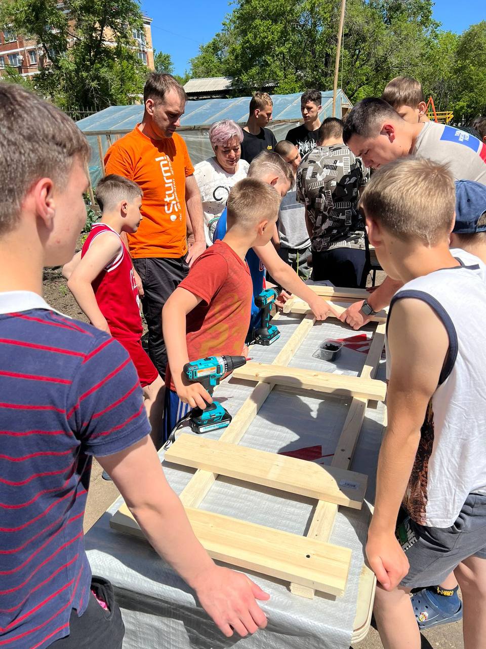 Ежегодно наша Компания проводит серию мероприятий в детских домах и реабилитационных центрах, где сотрудники проводят для ребят мастер-классы по навыкам работы инструментом – вместе красят, пилят, строгают, делают скворечники, облагораживают общественные пространства.