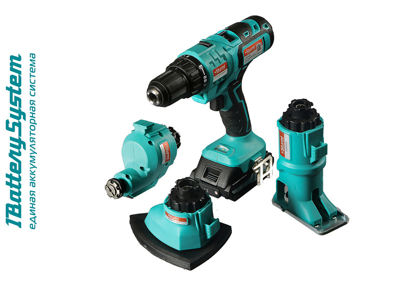 1BatterySystem - универсальная аккумуляторная система. Подходит ко всей линейке аккумуляторного инструмента Sturm!