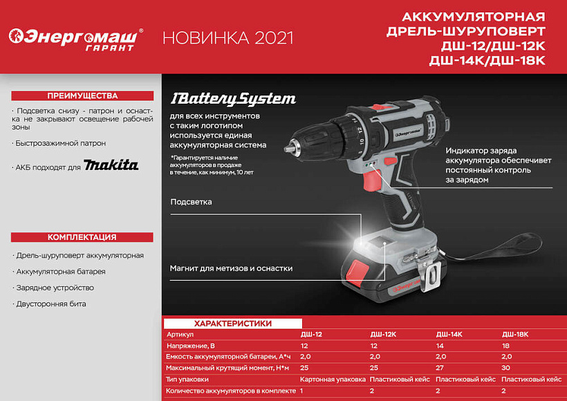 Аккумуляторный шуруповерт Энергомаш ДШ-12