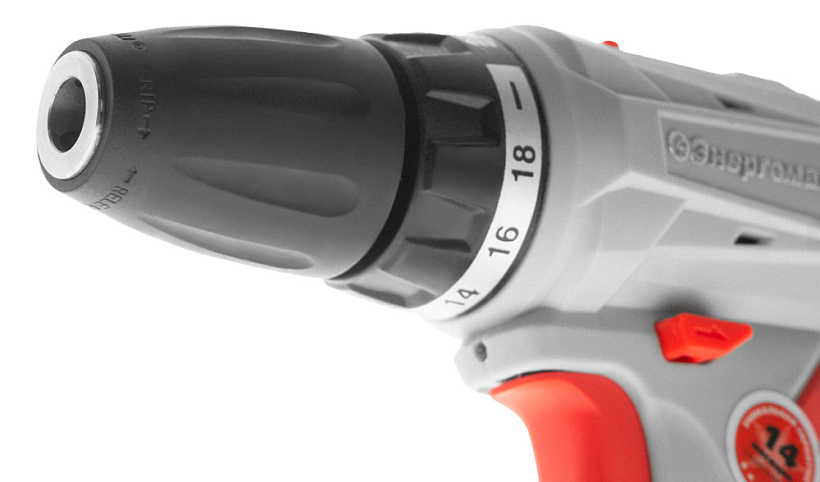 Прочный двухскоростной планетарный редуктор позволяет потребителю эффективно выполнять работы по сверлению в древесине, пластмассе и металле, Оптимальная регулировка силы крутящего момента, в 18 ступень + ступень сверления, позволяет устанавливать любой крепеж без его повреждения и вдавливания в материал.