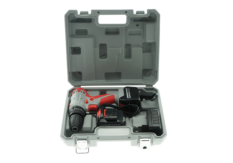 Прочный кейс, крепление для подвеса, карабин-защелка и набор бит в комплекте.