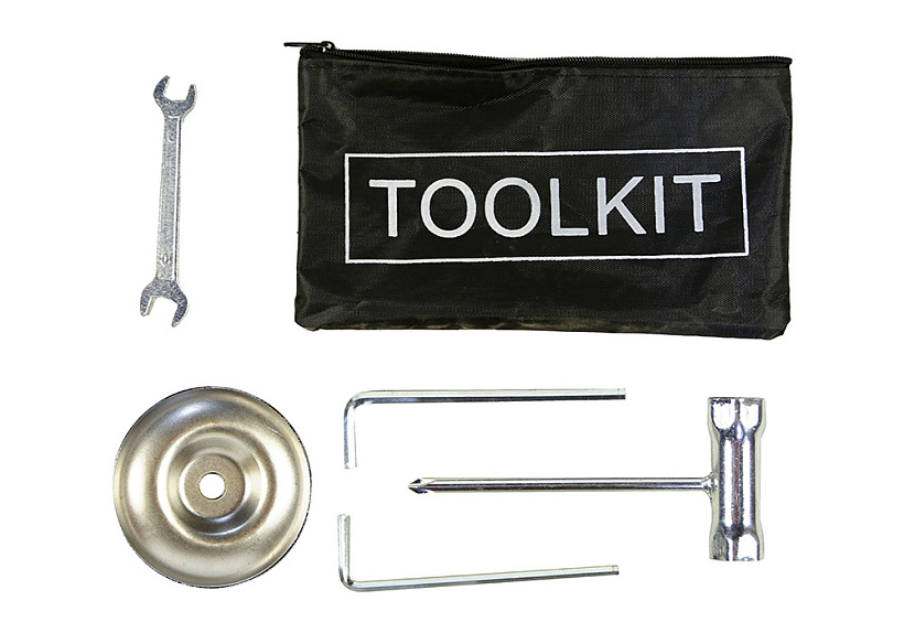 * Триммер * Четырехзубый нож * Шпуля с леской * Набор инструмента * Набор крепежа * Ремень * Инструкция **Внимание! Поставляется без аккумуляторов и зарядного устройства.**