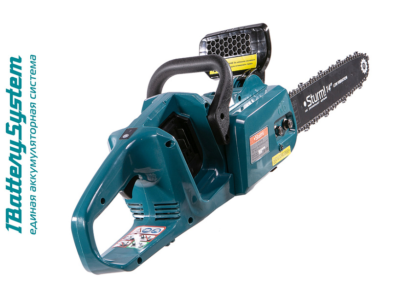 Аккумуляторная цепная пила является частью системы 1BatterySystem. 1BatterySystem - универсальная аккумуляторная система. Подходит ко всей линейке аккумуляторного инструмента Sturm!