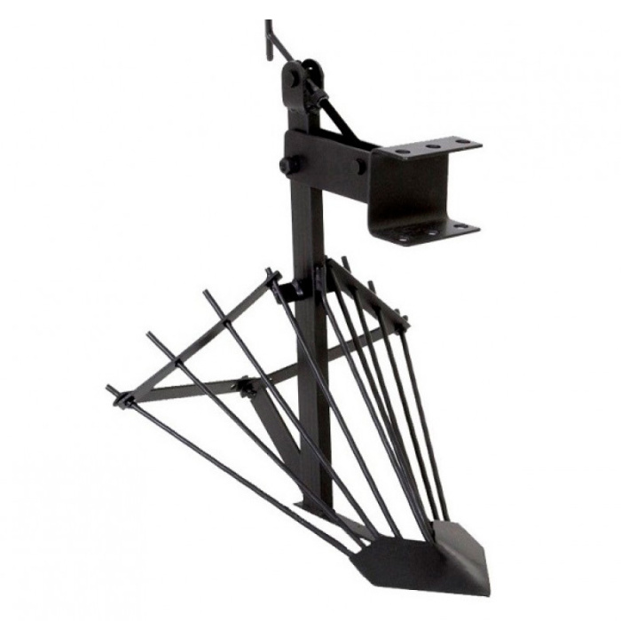 Картофелевыкапыватель для мотоблока со сцепкой Sturm! GKE-30 универсальная картофелекопалка, которую еще называют стрельчатая, веерная или сердце, напоминает лопату с приваренными прутьями. Картофелекопалка подрывает острым концом грунт посредине рядка, и клубни картофеля, свеклы или другого корнеплода попадают на зубцы. После этого лишняя почва стряхивается, а клубни остаются на поверхности. Расстояние между зубцами не превышает размеры маленького клубня картошки.