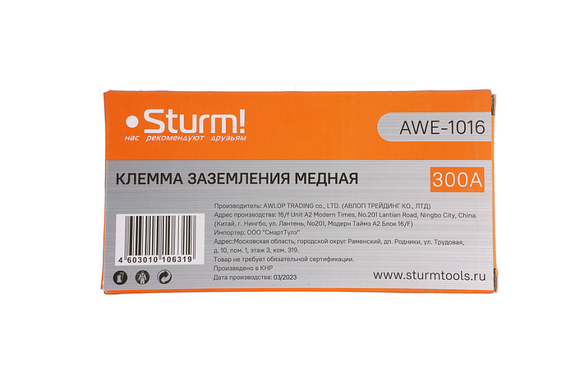 Клемма заземления Sturm! AWE-1016 предназначена для всех типов сварочных аппаратов при токах до 300 А. Применяется для присоединения (заземления) нулевого провода к свариваемой детали.