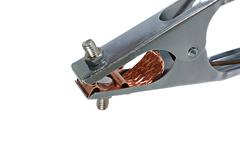 Клемма заземления обеспечивает плотный и надежный контакт в месте соединения во время проведения сварочных работ.