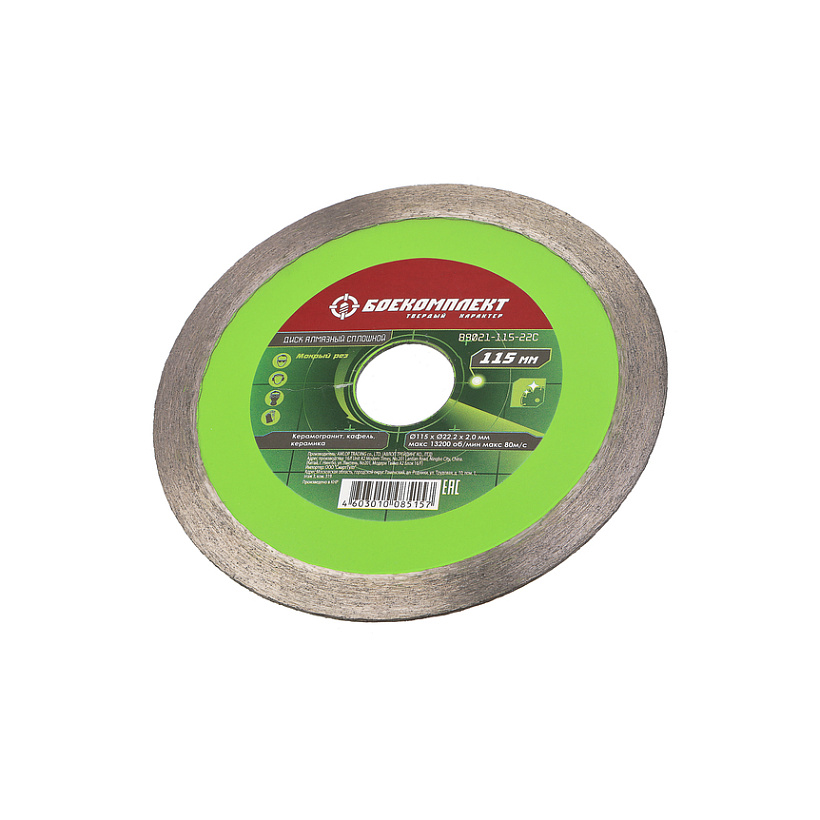 Алмазный диск 115x22,23 СПЛОШНОЙ, мокрый рез, БОЕКОМПЛЕКТ