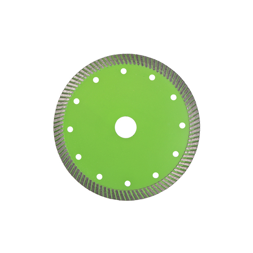 Диск алмазный TURBO с сегментированным алмазным слоем позволяет работать с широким спекторм строительных материалов, натуральными и искуственными камнями и способен прорезать тонкую арматуру в бетоне. Сухой рез. Охлаждение водой увеличивает ресурс диска. Self-sharpening technology -Технология самозаточки позволяет диску сохранять высокую скорость реза даже при длительной работе. Тело диска из стали марки 65Mn и метод горячей опрессовки при производстве алмазных дисков увеличивает его износостойкость и срок эксплуатации. Правильно подобранные компоненты металлической связки обеспечивают постепенный равномерный износ алмазного слоя.