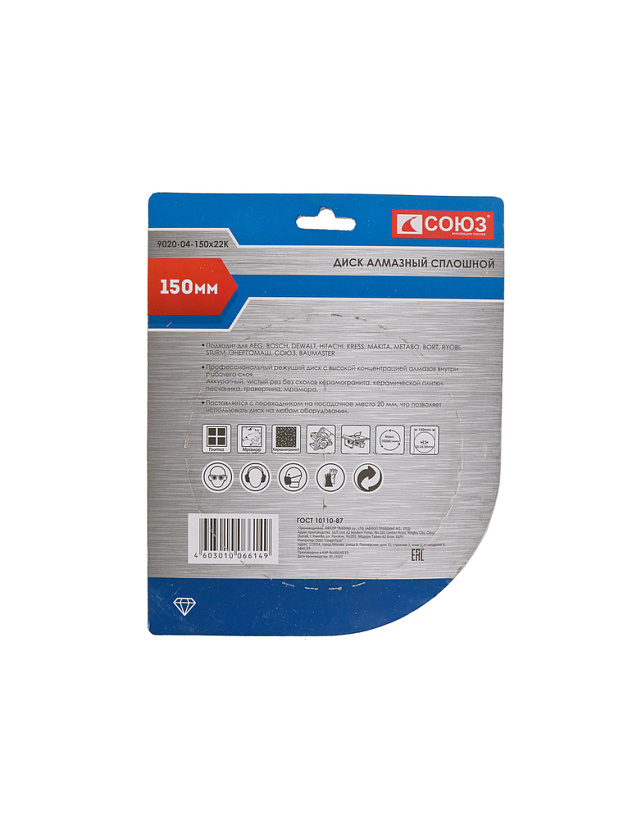 Диск алмазный СОЮЗ 9020-04-150x22K