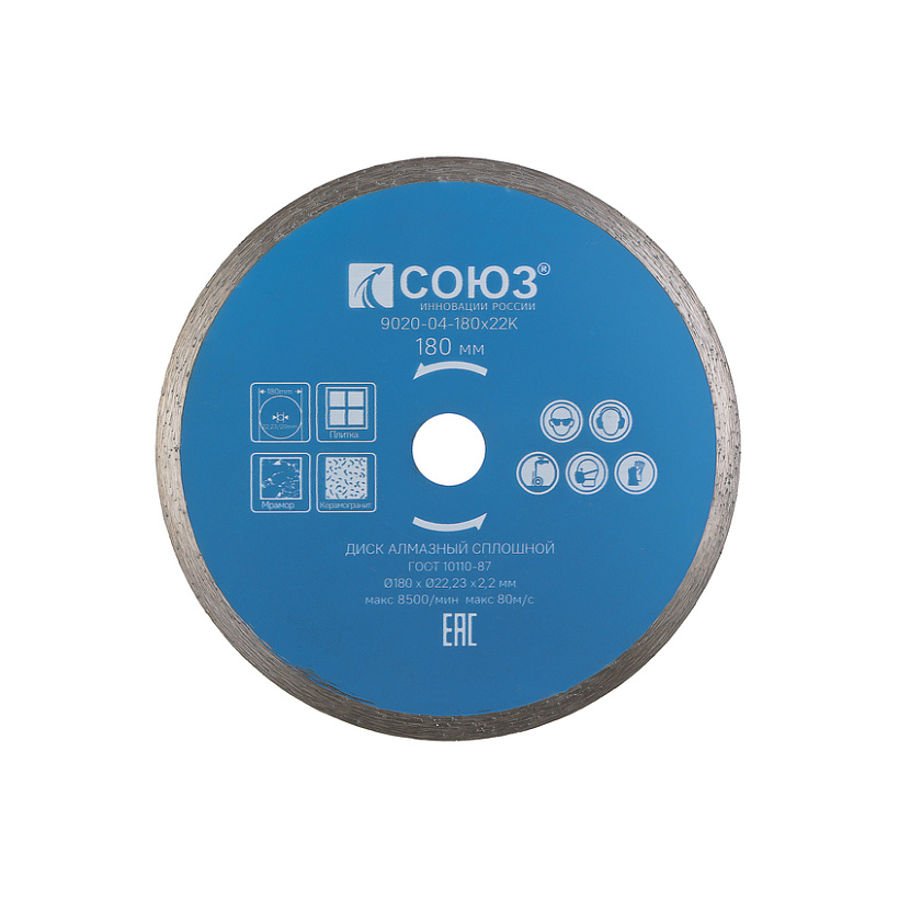 Алмазный диск со сплошным алмазным слоем, 180х22,2, Союз