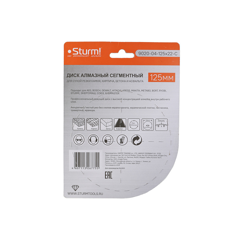 Алмазный диск, сухая резка, сегментный 125мм Sturm!