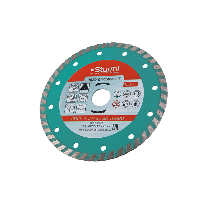 Алмазный диск, сухая резка, "Турбо" 150мм Sturm!