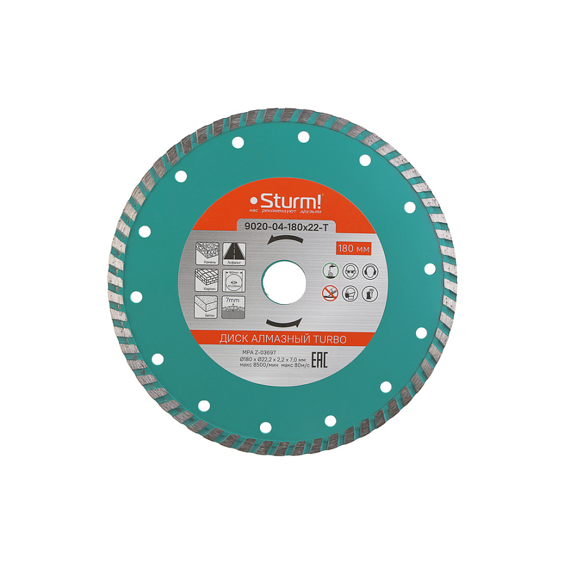 Алмазный диск, сухая резка, "Турбо" 180мм Sturm!