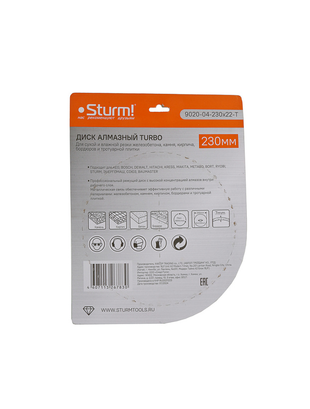 Алмазный диск, сухая резка, "Турбо" 230мм Sturm!