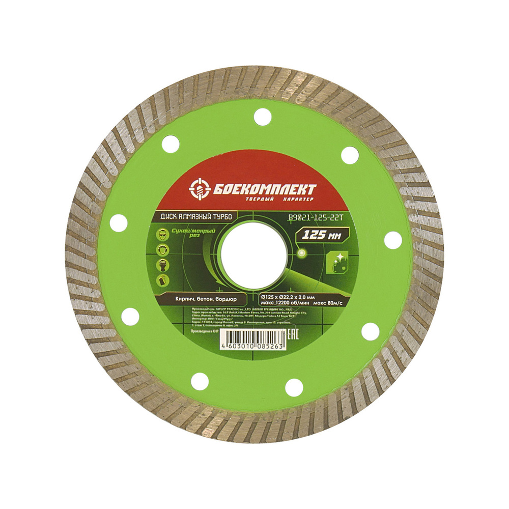 Диск алмазный Sturm! 9020-04-125x22-T с турбо сегментом для сухой и влажной резки различных материалов: камня, кирпича, бетона, железобетона, бордюра и тротуарной плитки. Режущая кромка с оптимальным содержанием алмазного слоя обеспечивает эффективную работу и низкую износостойкость. Турбо сегмент способствуют лучшему охлаждению. Тело диска, изготовленное из стали марки 65Г, обеспечивает его прочность и упругость. Переходное кольцо на 20мм в комплекте для использования с электрическим плиткорезом или иным инструментом.
