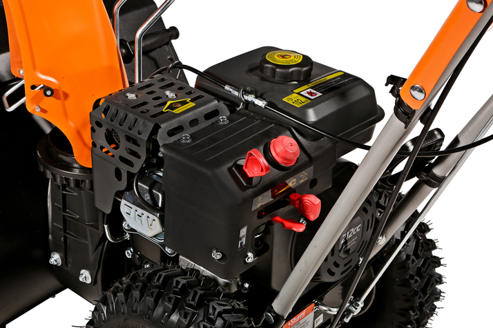 Sturm STG7453 — универсальный самоходный бензиновый снегоуборщик. Предназначен для расчистки территорий от снега различной плотности, как свежевыпавшего, так и слежавшегося. Модель оснащена надежным и неприхотливым четырехтактным двигателем KC, специально адаптированным для зимней эксплуатации, а также многоступенчатой трансмиссией, значительно повышающей универсальность машины. Конструкцией предусмотрены четыре скорости движения вперед и одна назад, выбор нужной скорости производится с помощью удобного рычага переключения. Низшая передача применяется при уборке плотно слежавшегося и мокрого снега, средние передачи — для работы со свежевыпавшим снегом, высшая передача — транспортный режим, предназначенный преимущественно для перемещения снегоуборщика. Высокая производительность машины обеспечивается не только мощным двигателем, но и продуманной конструкцией забора снега — этому способствует использование мощных агрессивных шнеков с большим профилем зуба, позволяющих легко справляться даже со слежавшимся снегом и настом, а также вместительного снегозагребного ковша, гарантирующего внушительную ширину прохода и возможность убирать сугробы до полуметра высотой. Снегоуборщик оснащен выпускным желобом с регулировкой как по направлению, так и углу выброса, благодаря чему пользователь без труда может настроить оптимальное расстояние, на которое будет отбрасываться снежная масса. Максимальная дальность выброса достигает 11 метров. Для лучшего сцепления с поверхностью модель комплектуется специальными шинами с глубоким протектором.