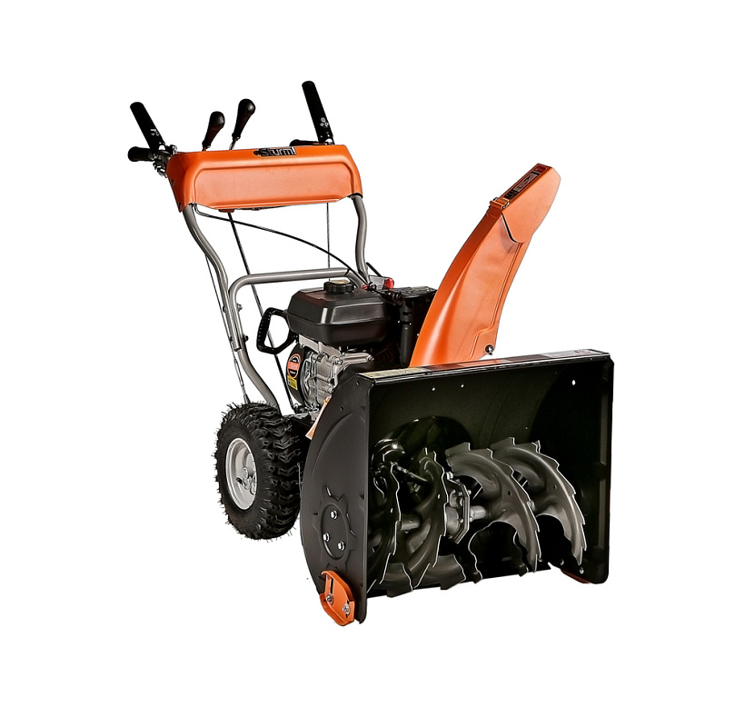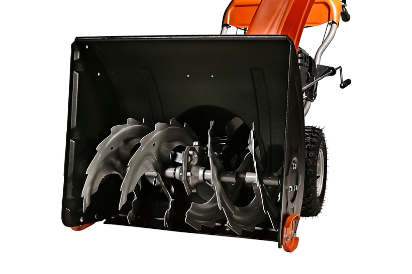 *Надежный зимний двигатель марки KC с защитой от низкого уровня масла. *Большой ковш 61х51 см с полозьями скольжения обеспечивает внушительную ширину прохода и позволяет убирать сугробы до полуметра высотой. *Агрессивные шнеки диаметром 310 мм легко справляются со слежавшимся снегом и настом. *Набор скоростей: 6 вперед/2 назад, для настройки оптимальной скорости движения снегоуборщика. *Большие пневматические колеса с зимним протектором для уверенного движения.