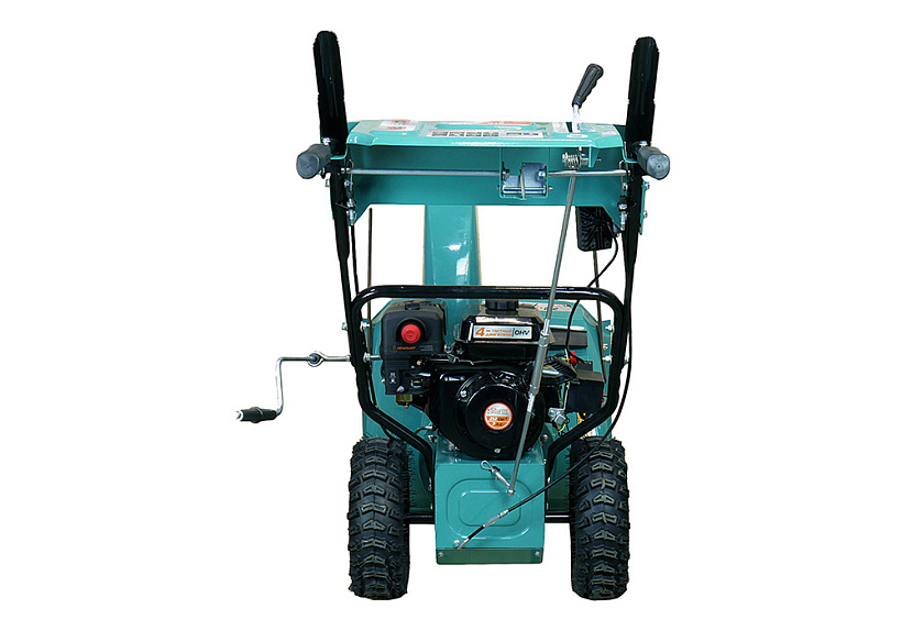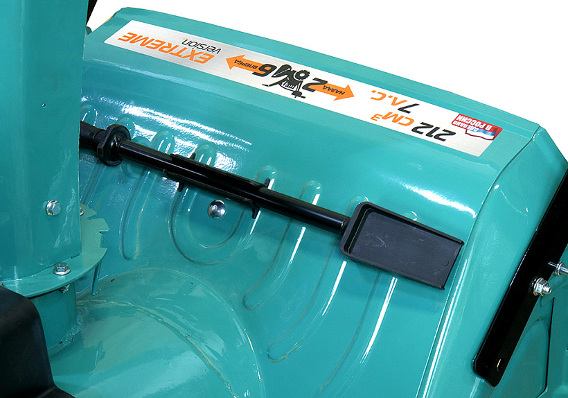Зазубренный шнек первой ступени успешно измельчает слежавшийся снег и может справиться даже с настом толщиной до 2 см. Высокооборотистая вторая ступень снегоуборочного агрегата отбрасывает снег на расстояние до 12 м. Широкие колеса с развитым анти-снежным протектором позволяют уверенно двигаться по рыхлому снегу.
