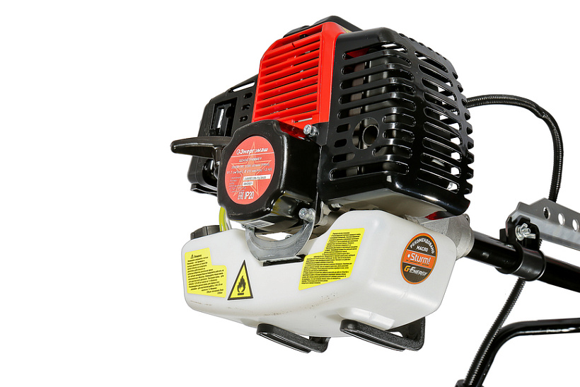 Топливный бак из прозрачного пластика облегчает контроль за уровнем топлива.
