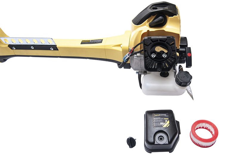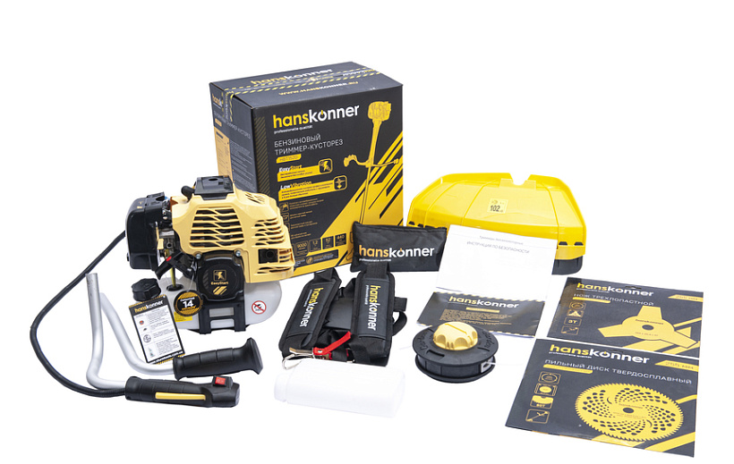 Бензиновый триммер Hanskonner – это незаменимый помощник на садовом участке, особенно на неровной поверхности или в труднодоступных местах, например, вдоль заборов, строений, вокруг кустов и деревьев. Без особых проблем он помогает справиться как с травой, так и с мелким кустарником.