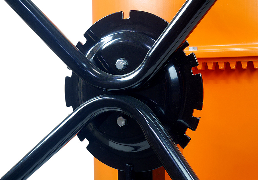 Ножной механизм фиксации положения барабана, который позволяет удерживать маховик для выгрузки смеси двумя руками.