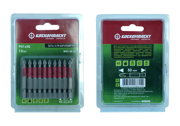 Биты PH1x50мм, сталь S2, 10шт, БОЕКОМПЛЕКТ