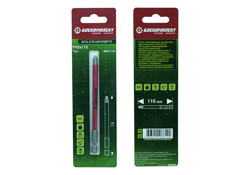 Биты PH2x110мм, сталь S2, 1шт, БОЕКОМПЛЕКТ