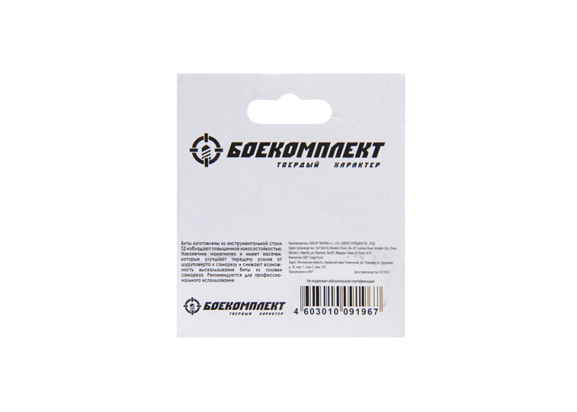 Биты изготовлены из высококачественной инструментальной стали S2 и обладают повышенной износостойкоcтью. Наконечник намагничен и имеет насечки, которые улучшают передачу усилия от шуруповерта/отвертки к саморезу и снижают возможность выскальзывания биты из головки самореза. Рекомендуются для профессионального использования.