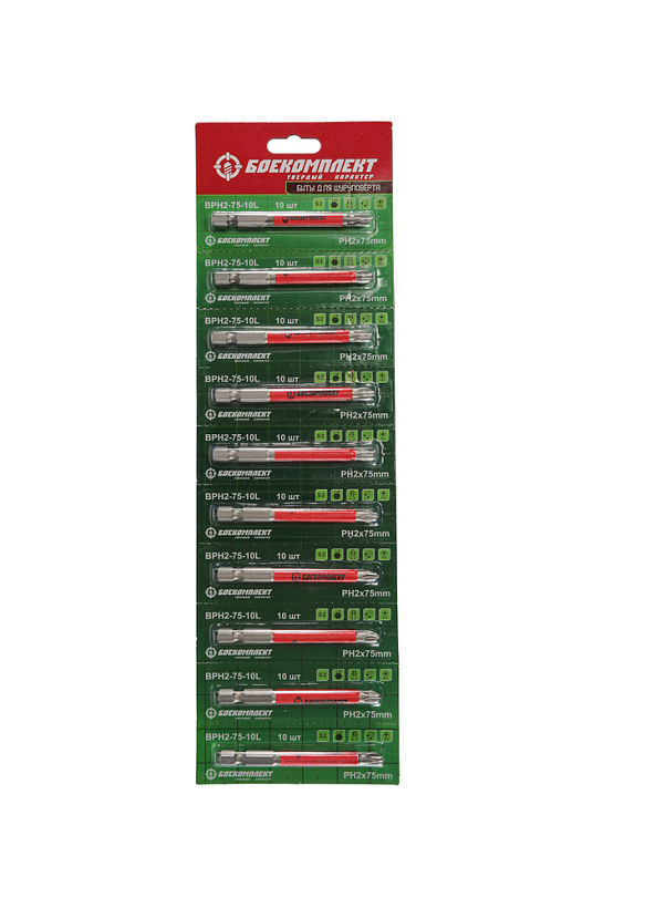 Биты PH2x75мм, сталь S2, 10шт ЛЕНТА, БОЕКОМПЛЕКТ