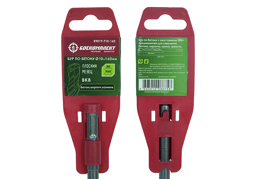 Бур SDS+ 10х160 плоский резец ВК8 спираль S4 БОЕКОМПЛЕКТ