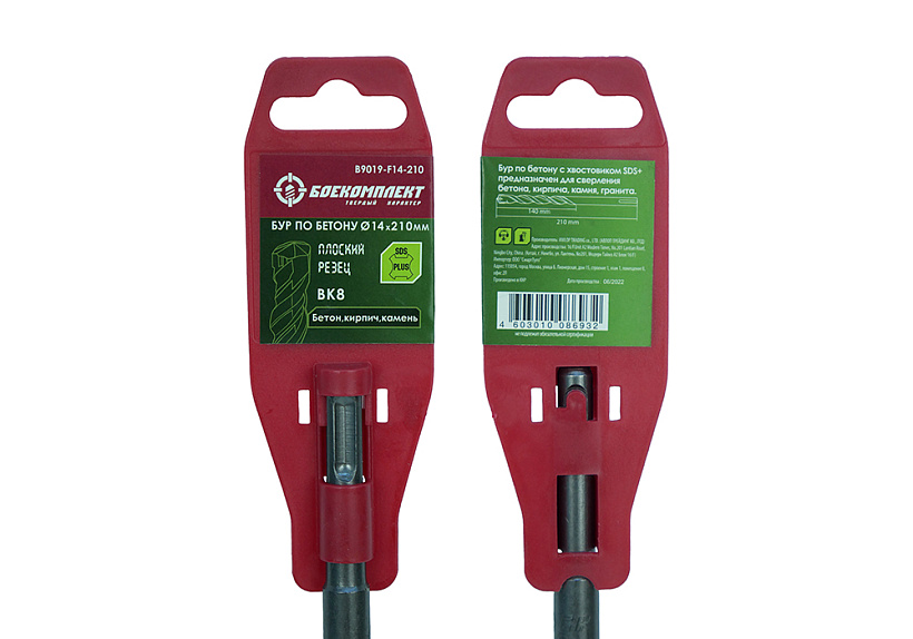 Бур SDS+ 14х210 плоский резец ВК8 спираль S4 БОЕКОМПЛЕКТ