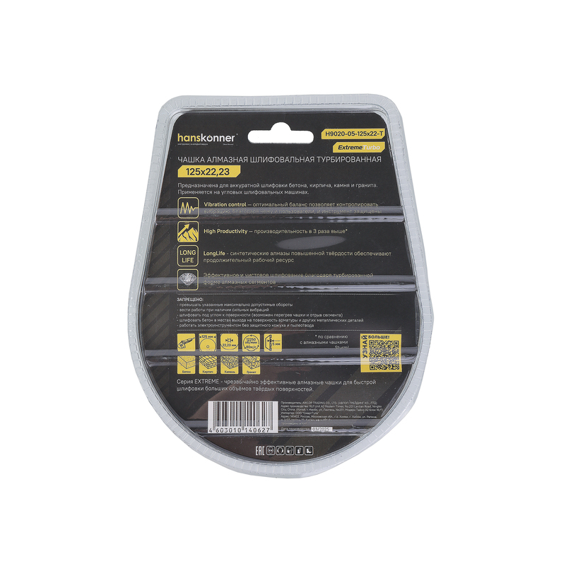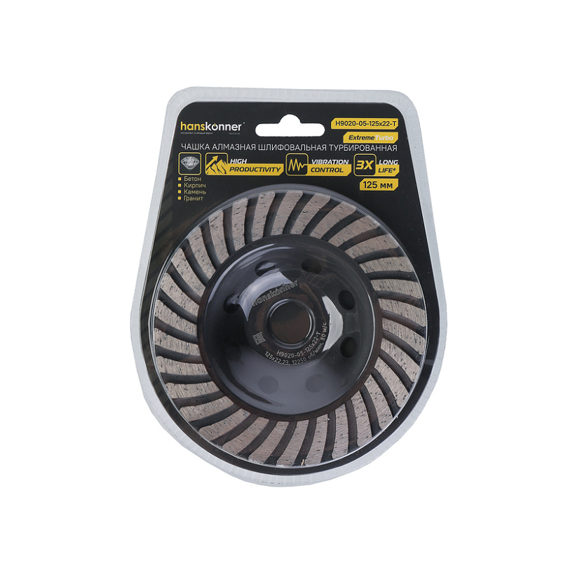 Чашка алмазная, шлифовальная Extreme, 125x22мм, TURBO, Hanskonner