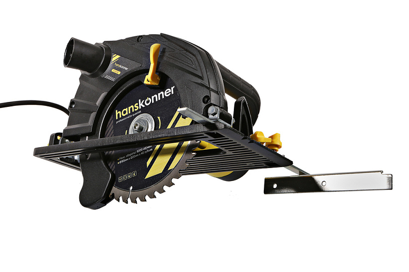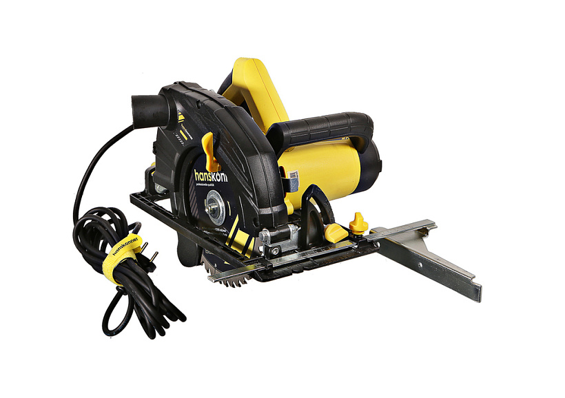 Hanskonner HCS51185 –  надежная и производительная циркулярная пила под рабочий диаметр пильного диска 185 мм. Модель оснащена электродвигателем увеличенной мощности MaxPower, высокопрочным редуктором и фирменными пылезащищенными   подшипниками, благодаря чему способна выполнять больший объем работ в сравнении с бытовыми аналогами и демонстрирует высокую эффективность не только с мягкими, но и твердыми породами древесины. Кроме того, применение в редукторе шестерен с мелким зубом позволило снизить уровень шума и обеспечить плавность работы. Инструмент получил не склонную к деформации литую алюминиевую платформу с дополнительными ребрами жесткости, гарантирующую высокое качество производимого реза. Предусмотрена возможность точной настройки пилы на необходимую глубину пропила, а также возможность выполнения резов на угол от 0 до 45 градусов. Фиксация опорной платформы в требуемом наклонном положении осуществляется безыинструментальным способом – с помощью специальных зажимных гаек, что значительно ускоряет и облегчает настройку перед работой. Инструмент обладает оптимальными массово-габаритными показателями, нейтральным центром тяжести и отличной эргономикой, что способствует его использованию без усталости продолжительное время. Дополнительная рукоять обеспечивает лучший контроль, а наличие обрезиненных накладок положительно влияет на надежность хвата. Для большего удобства пользователя, модель Hanskonner HCS51185 имеет функцию блокировки вала шпинделя – с ее помощью замена пильного диска происходит быстро и легко, без необходимости применения вспомогательного, стопорящего вал ключа. Безопасность при работе гарантируют автоматически сдвигающийся в процессе работы защитный кожух, прикрывающий вращающий пильный диск, а также блокиратор кнопки пуска, предотвращающий случайный запуск пилы. Предусмотрена функция быстрого доступа к щеткам QuickChange, дающая возможность их быстрой замены, без демонтажа элементов корпуса. Благодаря применению сетевого кабеля VelcroRubber4 с резиновой изоляцией, в полной мере сохраняется его гибкость и эластичность в условиях низких температур. Четырехметровая длина кабеля обеспечивает рабочую зону площадью до 50 квадратных метров, без необходимости применения дополнительного сетевого удлинителя, а фиксатор-липучка способствует удобству хранения.