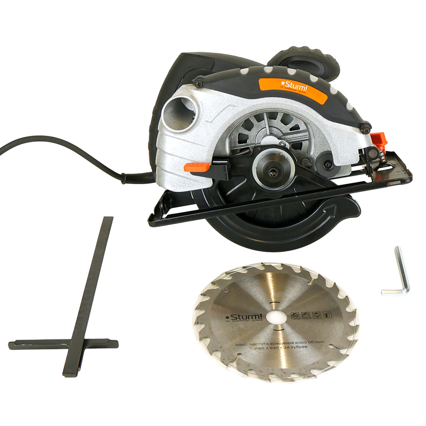 Sturm CS50201 – многофункциональная циркулярная пила с возможностью стационарной установки. Модель оснащена производительным 2000 Вт двигателем, развивающим скорость вращения 5500 об/мин и уверенно справляется с пропилами глубиной до 65 мм. Для предотвращения заклинивания режущего диска во время работы конструкцией предусмотрен специальный расклинивающий нож. Благодаря регулируемой опорной платформе, пользователь может при необходимости настроить оптимальную глубину пропила. Кроме того, опорная платформа имеет возможность регулировки и бесключевой фиксации в наклонном положении на угол до 45 градусов. Для максимально точной установки опорной платформы под требуемым углом предусмотрена специальная шкала с насечкой. Важным достоинством модели Sturm CS50201 является возможность стационарного крепления к рабочему столу диском вверх – инструмент можно использовать как распиловочный станок. Удобство смены оснастки обеспечивает функция блокировки вала шпинделя – с ее помощью замена пильного диска происходит быстро и легко без необходимости применения вспомогательного, стопорящего вал ключа. Наличие системы отвода пыли позволяет эффективно удалять опилки и пыль из зоны резания. Безопасность при работе гарантируют автоматически сдвигающийся в процессе работы защитный кожух, прикрывающий вращающий пильный диск, а также блокиратор кнопки пуска, предотвращающий случайный запуск пилы.