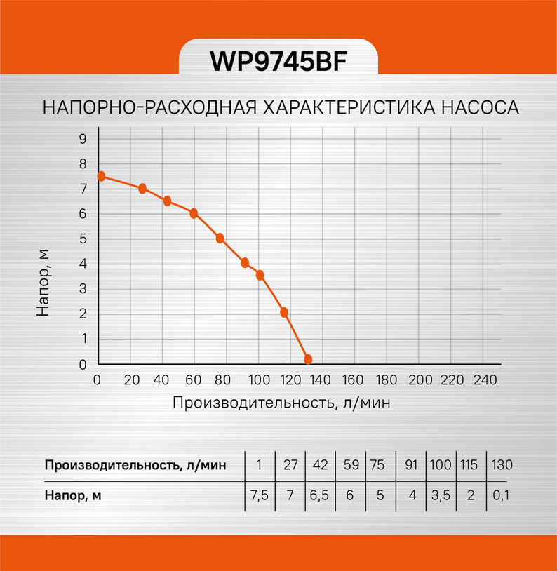 Sturm WP9745BF – погружной дренажный насос – предназначен для перекачки воды с максимальным размером частиц не более 6.5 мм из баков, бочек и прочих садовых емкостей, позволяя организовать эффективный полив приусадебных, и садовых территорий. Может использоваться для полива растений теплой водой (максимальная температура воды не должна превышать 35 градусов). Обладает компактными габаритными размерами и небольшой массой, за счет чего удобен при хранении и транспортировке. Корпус насоса выполнен из прочного качественного пластика, что положительно влияет на надежность и долговечность устройства. При мощности электромотора в 450 Вт, модель характеризуется высокой производительностью – способна перекачивать за час до 7800 литров жидкости и обеспечивать ее подачу на высоту до 7.5 метров, осуществляя забор с глубины до 5 метров. Насос оснащен поплавковым выключателем, который обеспечивает автоматическое, без вмешательства пользователя, управление устройством: насос включается при подъеме уровня воды и отключается, когда уровень упадет ниже определенного значения. Также в конструкции насоса Sturm WP9745BF предусмотрена термозащита – она отключает питание при перегреве и позволяет возобновить работу при остывании насоса до рабочей температуры.