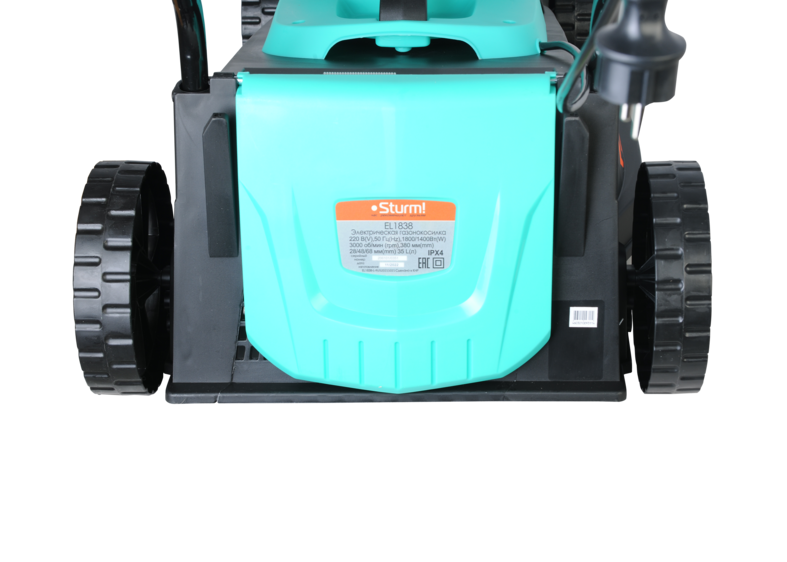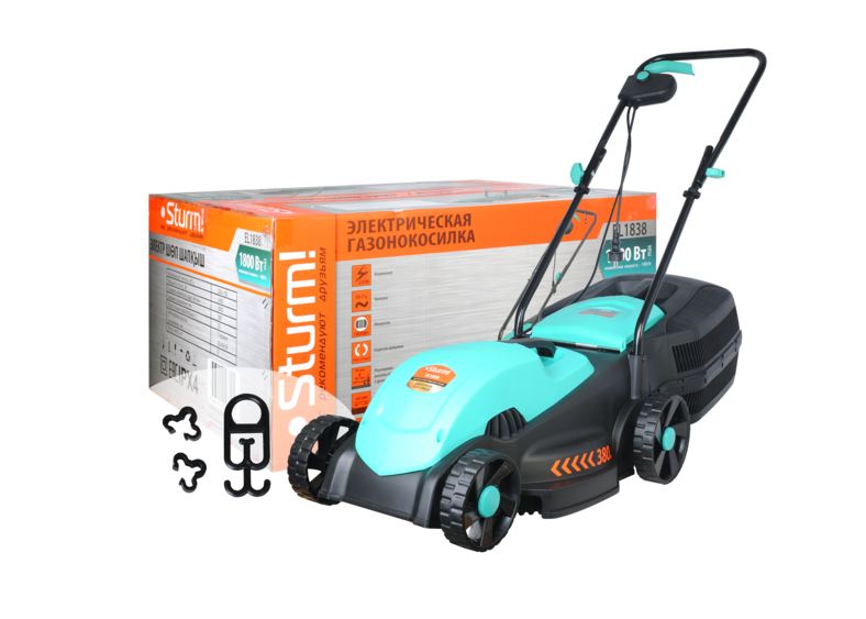 Sturm EL1838 – универсальная электрическая газонокосилка для бытового использования. Предназначена для скашивания травы на участках небольшой и средней площади. В отличие от ручных кос и триммеров, газонокосилка гарантирует значительно более точный и равномерный срез, что придает газону эстетически привлекательный вид. Модель Sturm EL1838 обладает небольшими массогабаритными показателями, что положительно сказывается на удобстве хранения, а также перемещении устройства в процессе работы. Оснащена производительным 1800 Вт электродвигателем, позволяющим уверенно справляться с различными типами травы, включая густую и высокую. Благодаря ременному приводу достигается низкий уровень шума при работе, а также более эффективно гасятся вибрации, передаваемые от двигателя к режущему механизму. Ширина скашивания за один проход составляет 380 мм. На инструменте предусмотрены три положения регулировки высоты скашивания – в зависимости от состояния газона и личных предпочтений пользователь выбирает нужное значение: 28/48/68 мм. Для исключения непреднамеренного запуска устройства пусковая кнопка имеет защиту от случайного включения 2 Point Safety Switch. Фиксация рукояти производится с помощью удобных барашковых зажимов, что дает возможность легко, с минимальными усилиями, подготовить газонокосилку к работе без необходимости применения вспомогательного инструмента. В штатную комплектацию Sturm EL1838 входит травосборник из ударопрочного пластика объемом 35 литров. Удобству транспортировки способствует наличие переносной рукоятки на корпусе.