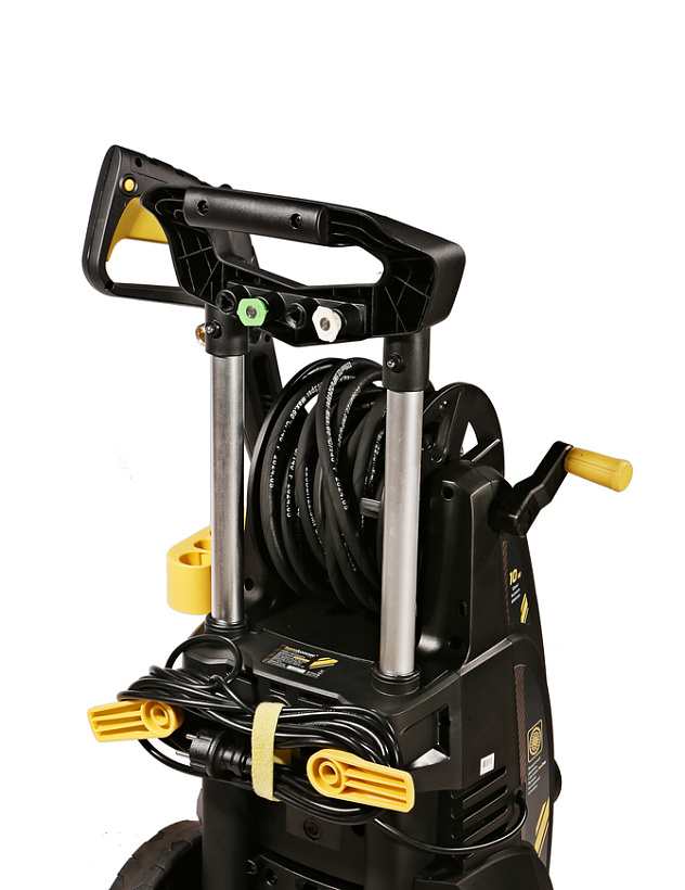 Для защиты шланга от нежелательных перегибов модель имеет штатную катушку для его намотки. 2 насадки с различной шириной струи и роторная фреза "TurboNozzle" позволяют выбрать оптимальный режим работы.