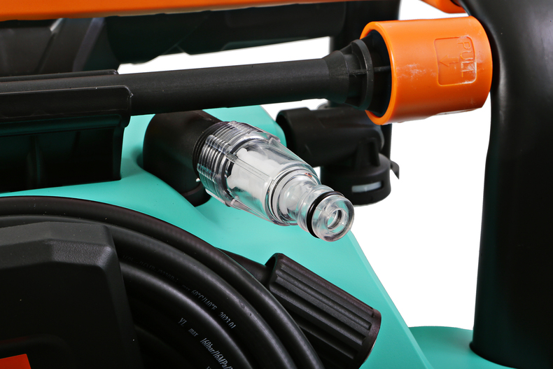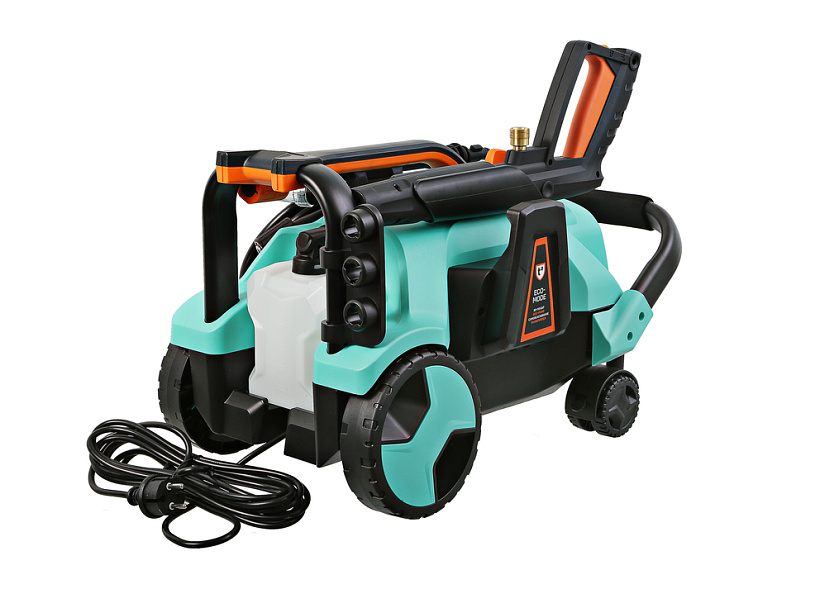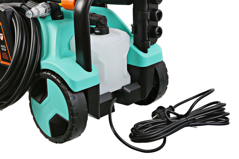 *Регулировка мощности позволяет переключать мойку в режим ECO для работ, не требующих максимального давления *В конструкции мойки предусмотрено 4 колеса: 2 основных для перемещения в вертикальном положении за ручку и 2 дополнительных поворотных для перемещения в горизонтальном положении за шланг в след за пользователем *Увеличенная до 5 метров длина сетевого кабеля и шланга высокого давления до 7 метров обеспечивает большую рабочую зону 452 квадратных метра. А подвижность мойки в сочетании с садовым удлинителем делает рабочую зону практически не ограниченной в пределах владений пользовтаеля. *В комплекте три фрезы: веерная, turbo-грязевая, угловая. Это позволит пользователю работать с загрязнениями любой степени и в любых местах *Для работы с моющими средствами мойка оснащена встроенным бачком для подачи эмульсии и внешним пеногенератором с регулировкой густоты пены