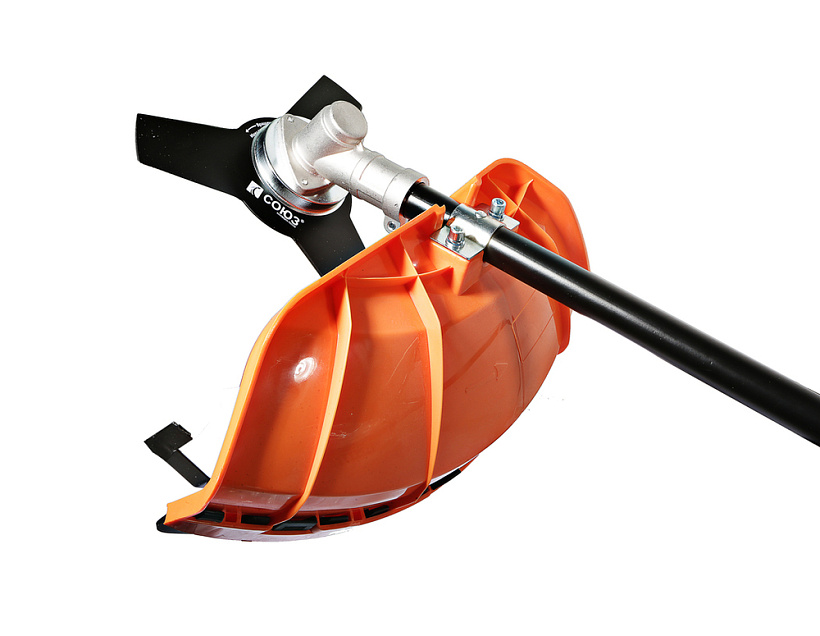 В штатную комплектацию модели СОЮЗ ГКС-2500В входят катушка с леской, трехлопастной режущий нож, наплечный ремень и набор аксессуаров для сборки.