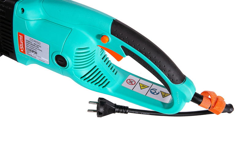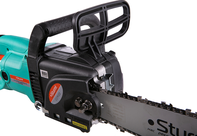 Sturm CC99222 — производительная электрическая цепная пила бытового назначения. Благодаря компоновке с продольным расположением электромотора и, как следствие, небольшой ширине корпуса, нейтральному центру тяжести и хорошей эргономике, инструмент обладает отличной маневренностью, облегчая выполнение пропилов под различными углами, а также позволяя эффективное использование в условиях ограниченного пространства. Модель оснащена электромотором мощностью 2.2 кВт и развивает скорость движения цепи в 360 м/мин — это способствует как высокой скорости единичного пропила, так и общей производительности при значительных объемах работы. Для обеспечения высокого ресурса инструмента особое внимание уделено наиболее нагруженным элементам конструкции: электромотор покрыт несколькими изоляционными слоями термостойкого лака и имеет дополнительное бронирование армирующей нитью, вал приводной звездочки установлен на шарикоподшипниках, шестерни редуктора выполнены из качественной легированной стали. Кроме того, применение шестерен с конической формой зуба позволило снизить уровень шума при работе. Инструмент оборудован автоматической системой подачи масла к пильной гарнитуре — при холостом режиме работы смазка приостанавливается. Есть возможность ручной регулировки количества подаваемого масла. Электропила проста в обслуживании и эксплуатации. Для удобства пользователя на модели Sturm CC99222 установлен автоматический механизм регулировки цепи, обеспечивающий ее оптимальное натяжение в процессе работы. За счет предусмотренной функции быстрого доступа к щеткам, их замена осуществляется без разбора элементов корпуса. Безопасность использования гарантируют механический тормоз экстренной блокировки цепи и защита от непреднамеренного пуска. Длинный трехметровый сетевой кабель позволяет расширить рабочую зону, не используя дополнительный сетевой удлинитель.
