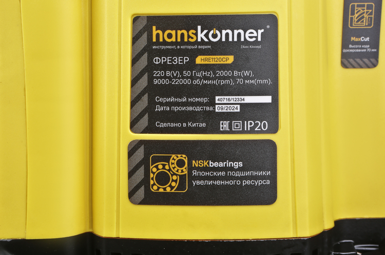 В зависимости от характеристик обрабатываемого материала устанавливается скорость вращения - от 9000 до 22000 об/мин. Мощный электродвигатель фрезера (2000 Вт) позволяет обрабатывать заготовки из пород деревьев различной твердости. Удобные прорезиненные рукоятки обеспечивают хорошую управляемость и контроль за процессом обработки. Для повышения надежности и продления срока жизни инструмента в механизме установлены качественные подшипники NSK (Япония), установлены система плавного пуска и система поддержания оборотов под нагрузкой. В комплект поставки  входят цанги  8 и 12 мм, параллельная направляющая с возможностью точной регулировки. Для безопасности пользователя установлен прозрачный защитный щиток, предусмотрена возможность подключения пылесоса.