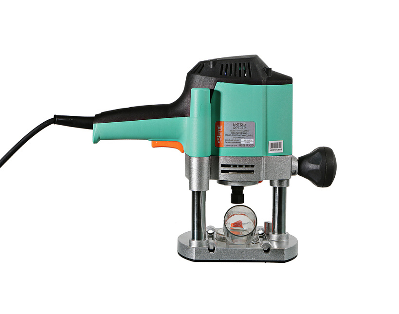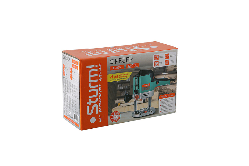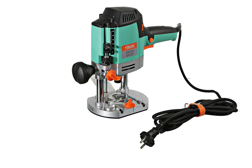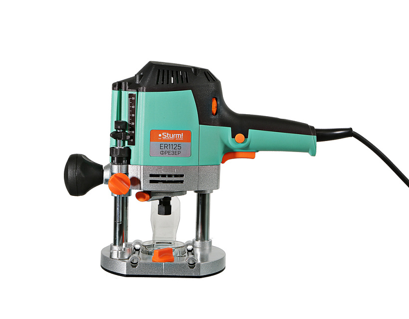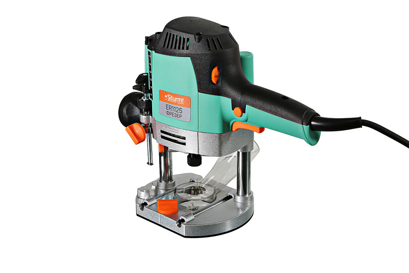 Фрезер Sturm! ER1125 — маневренный, многофункциональный электроинструмент для всех видов фрезерования: продольного, фигурного, по шаблону, по радиусу заготовок из различных материалов. Подготовке к выполнению требуемой  задачи, данной моделью, пособить электронная регулировка скорости оборотов  и плавная настройка глубины фрезерования в пределах 50 мм, тем более есть возможность установить цангу диаметром как 6 мм, так и 8 мм.