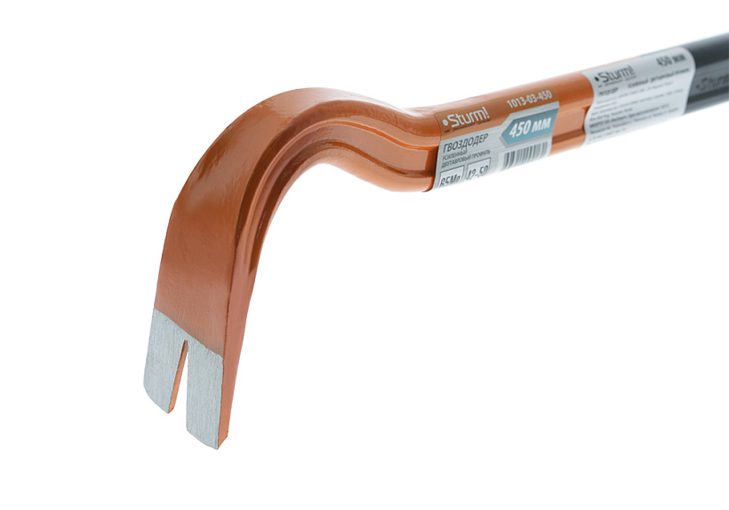 Гвоздодер изготовлен из кованой высококачественной инструментальной рельсовой стали.Рабочие поверхности закалены до 45-50 HRC, что обеспечивает их высокую жёсткость даже при самых тяжёлых нагрузках.