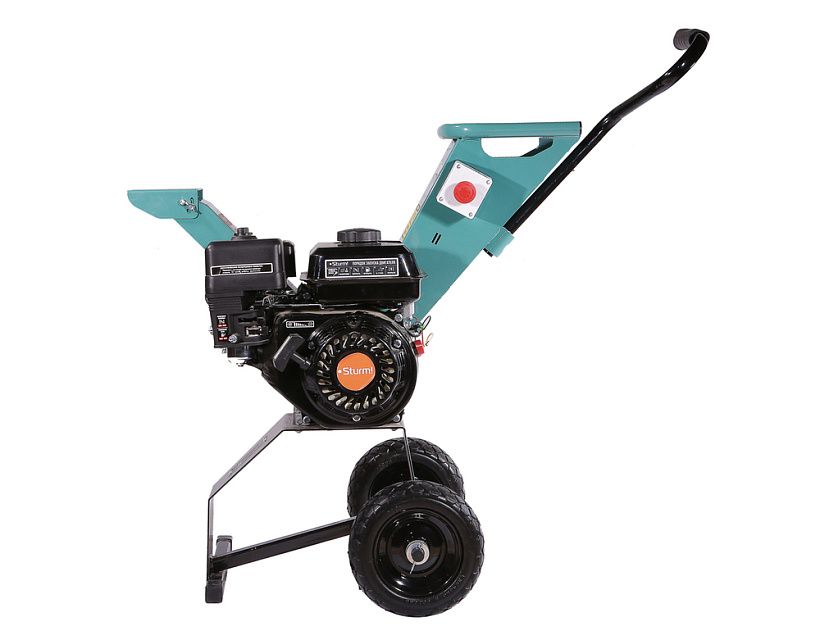 Конструкцией предусмотрен надежный четырехтактный двигатель объемом 212 см3 и мощностью в 7 лс, широкое загрузочное окно диаметром, удобные колеса для транспортировки, а также высококачественные острые режущие ножи из стали.