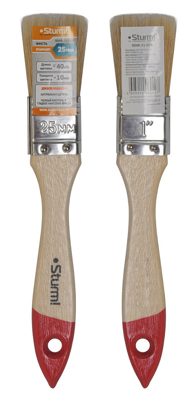 Кисть плоская "Standart" 1" (25 мм), натуральная щетина Sturm!