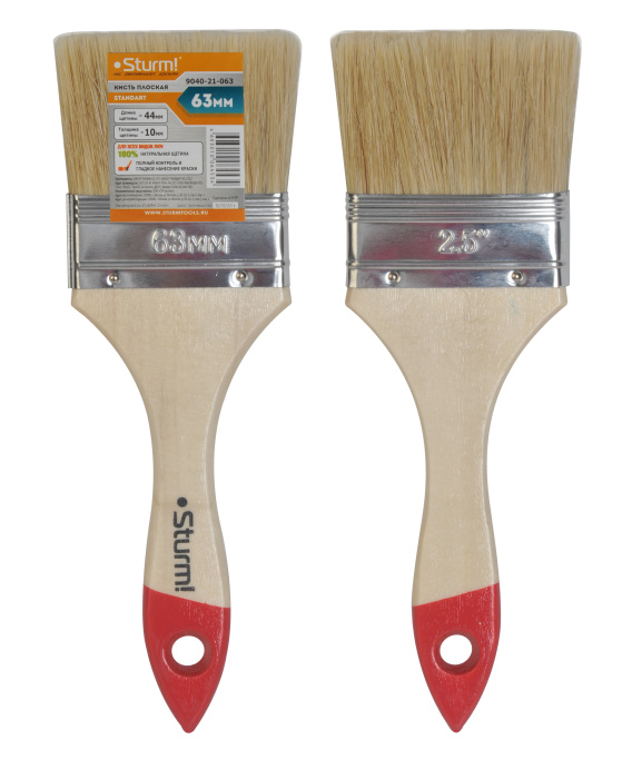 Кисть плоская "Standart" 2,5" (63 мм), натуральная щетина Sturm!