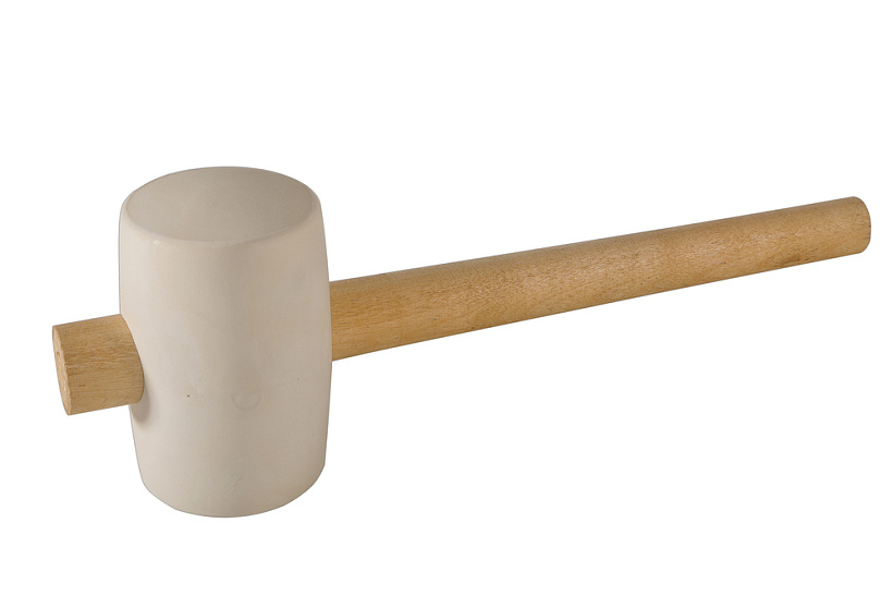 Белый цилиндрический боек; Эргономичная деревянная рукоятка; Диаметр бойка 75 мм.