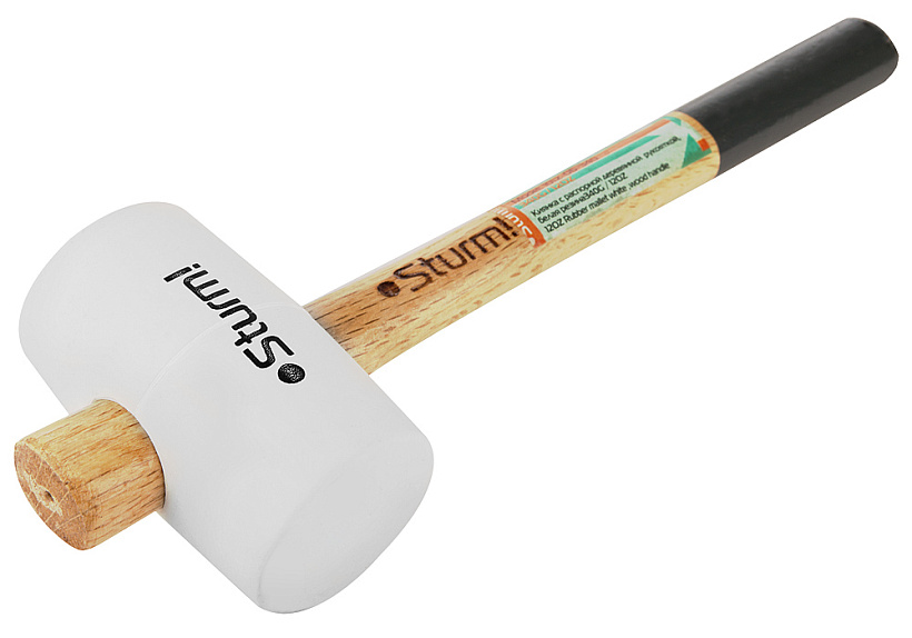 Белый цилиндрический боек, деревянная рукоятка удобной формы. Благодаря небольшому весу удобна в работе на протяжении длительного времени.