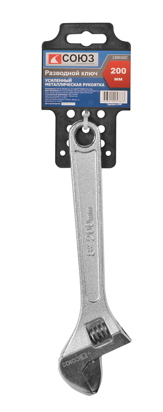 Разводной ключ 200мм, зев 26мм, хромированный, СОЮЗ