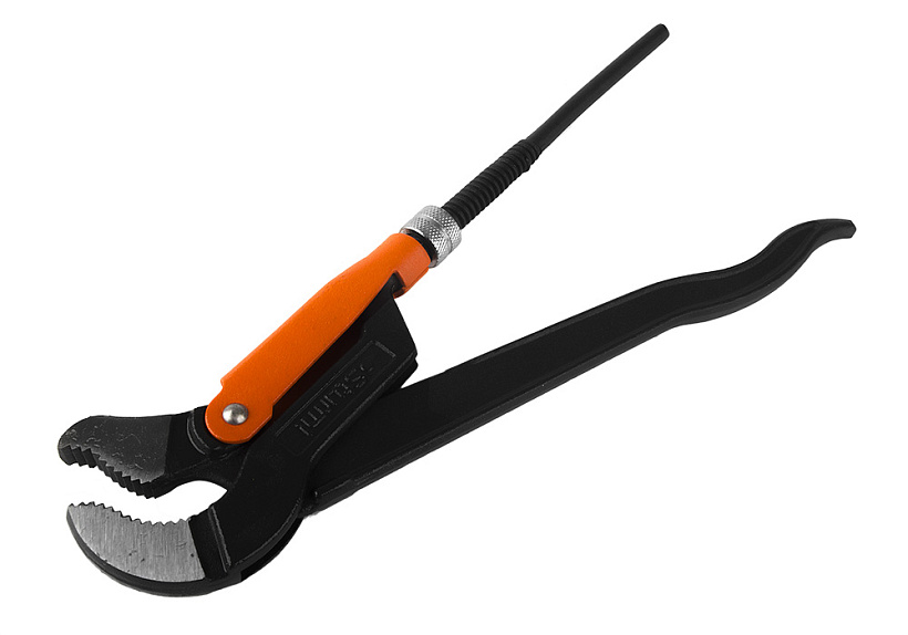 S-образная форма губок позволяет фиксировать трубу в трёх точках для наилучшего захвата.